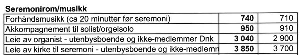 Ellers gjelder følgende priser for 2026: